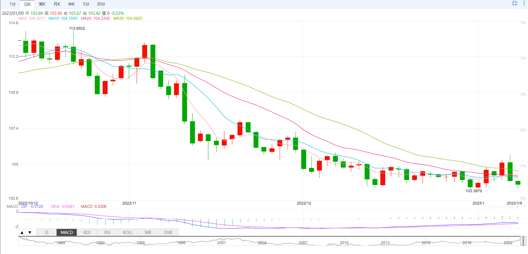 支撑位:103.3 102.7 101.54