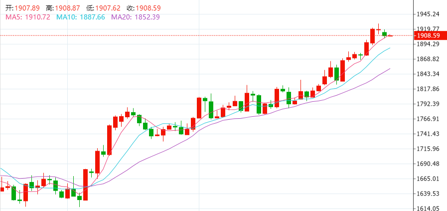 金价周二回落,上一交易日创下八个多月高点,因人们希望美联储今后将采取不太激进的加息方式;现货金下跌0.7%,至每盎司1904.87美元,周一曾创下4月底以来的最高价。