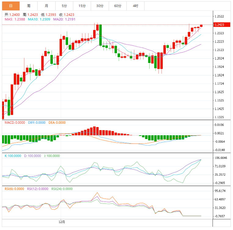 周一盘中,美元指数窄幅震荡,目前交投于101.78附近,美元兑日元交投于129.63附近。尽管受到获利了结的打击,但上周五美元兑日元但仍上涨0.8%,周线上涨1.23%,创下12月初以来最大单周涨幅,此前日本央行总裁黑田东彦重申将维持超宽松的货币政策,令日元仍处于守势。