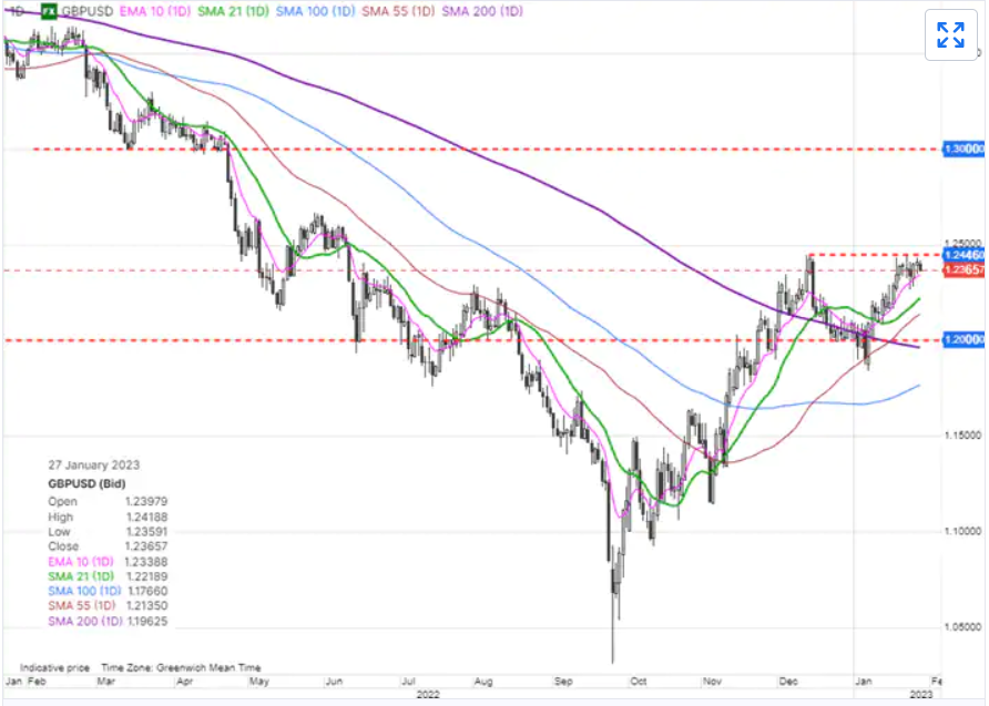 昨日,美国国债收益率小幅上扬,原因是上周初请失业金人数再次下降(至18.6万,为去年4月以来最低),同时美国第四季度GDP预期略强于预期。这有助于防止美元进一步下跌,但感觉美元交易者认为没有必要在这里交易,因为下周将出现一系列重要的美国宏观风险,包括周三的FOMC会议,同一天是ISM制造业调查,然后是周五的就业和收益数据以及ISM服务业(回想一下12月ISM服务业调查的奇怪大跌幅)。