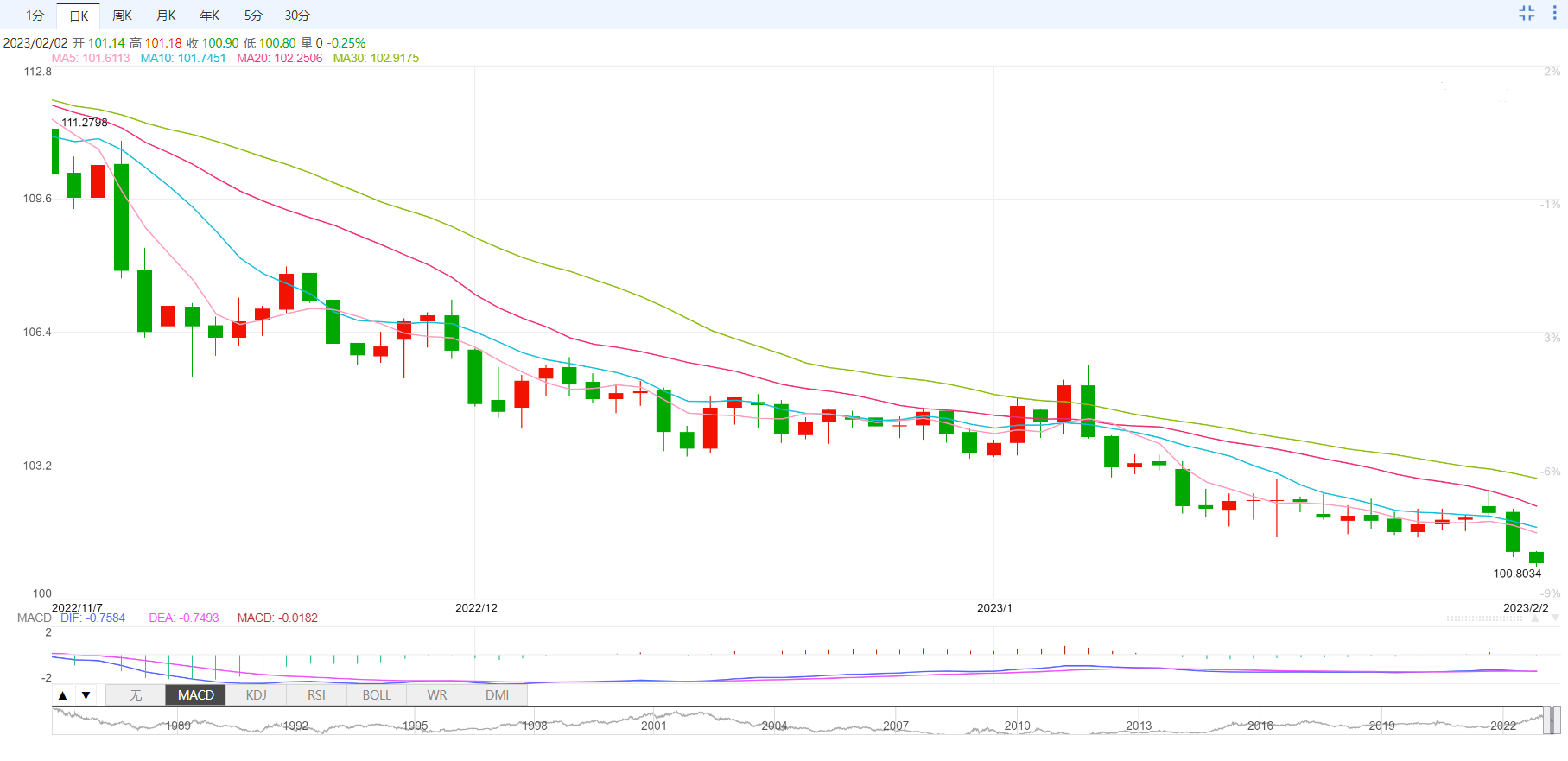 技术面:如果跌破2022年5月的低点101.30,美元空头有望突破心理阻力100.00。