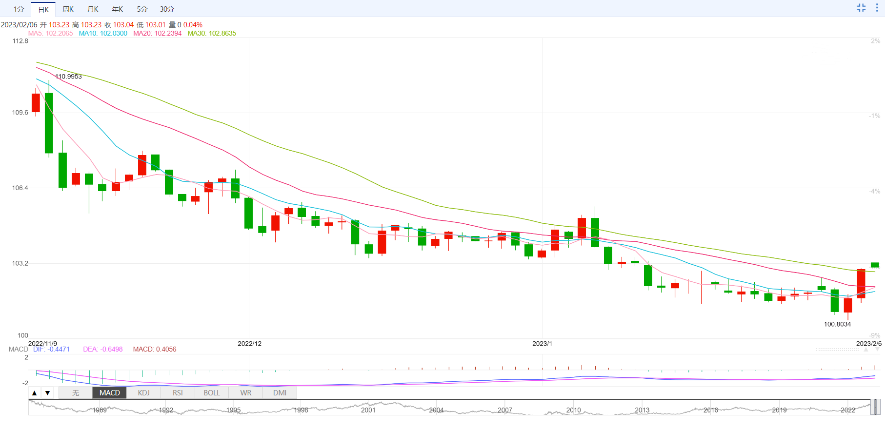 支撑位:102.03 101.06 100.57
