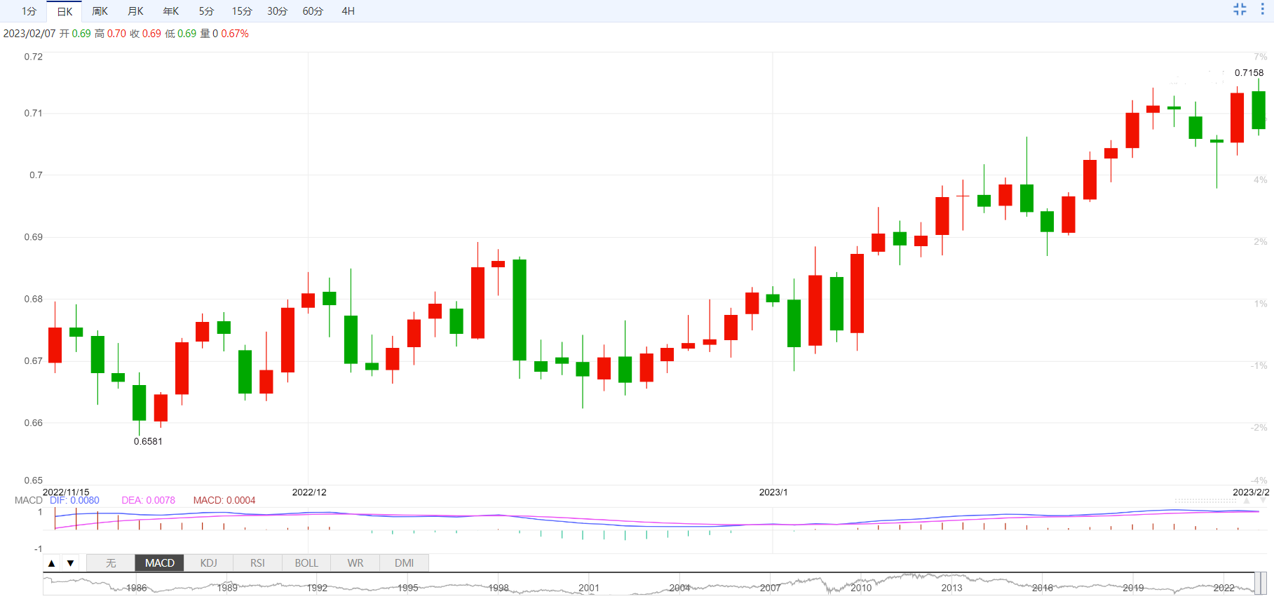 市场反应:澳元兑美元短线一度拉升约30点至0.6950。