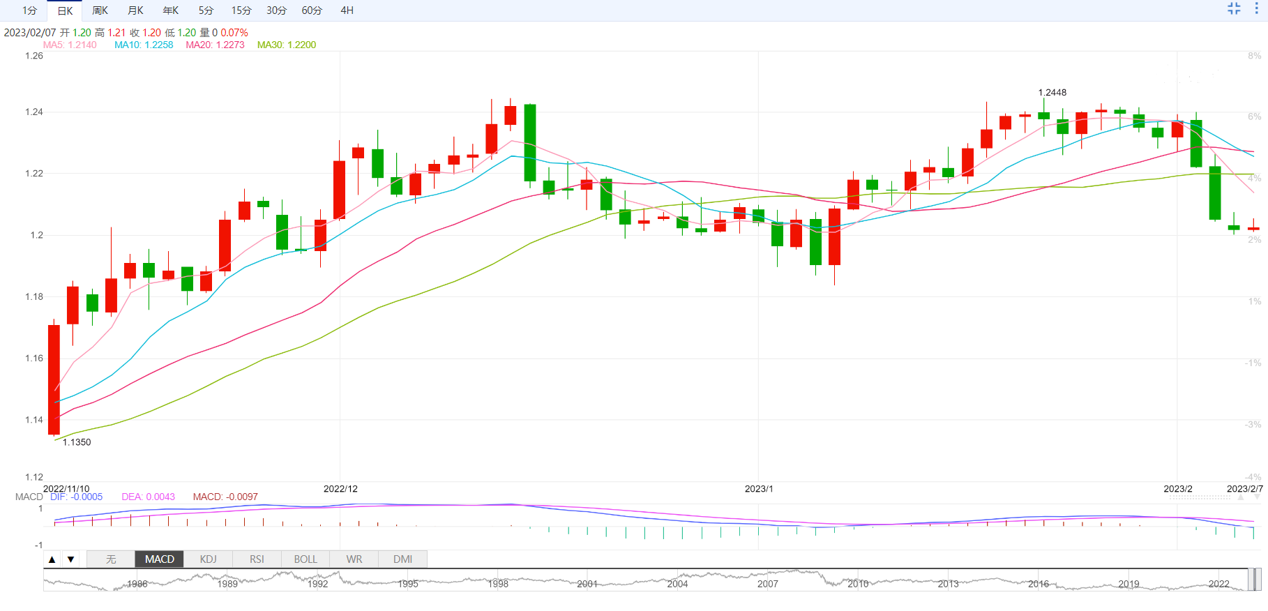 英镑兑美元在周二欧市早盘反弹至1.2050,整理近期跌势,录得四日来首日上涨。汇价走势印证了相对强弱指标接近超卖,交易员等待新线索。即便如此,汇价守住前一周跌破自2022年10月和9月以来的关键支撑线,目前它们在1.2150和1.2275附近构成阻力位。价格自两个月前的水平阻力区域1.2450附近反转也令英镑空头充满希望。因此除非突破1.2450的阻力位,否则英镑的反弹依然受限,而1.2150似乎为附近障碍。