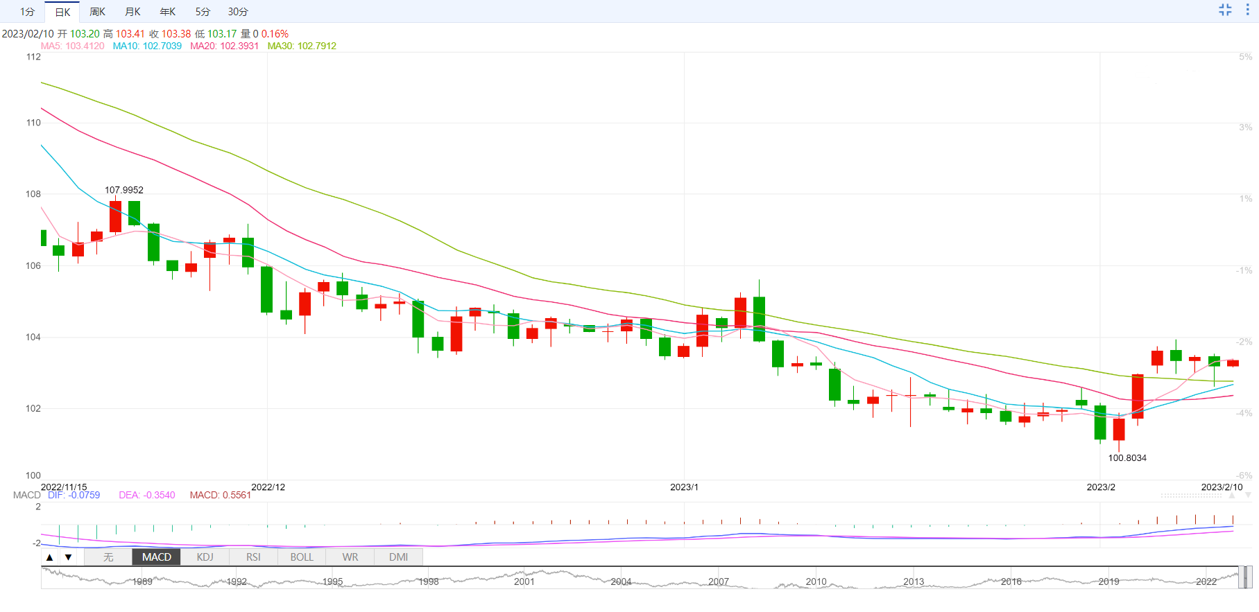 支撑位:102.71 102.22 101.79