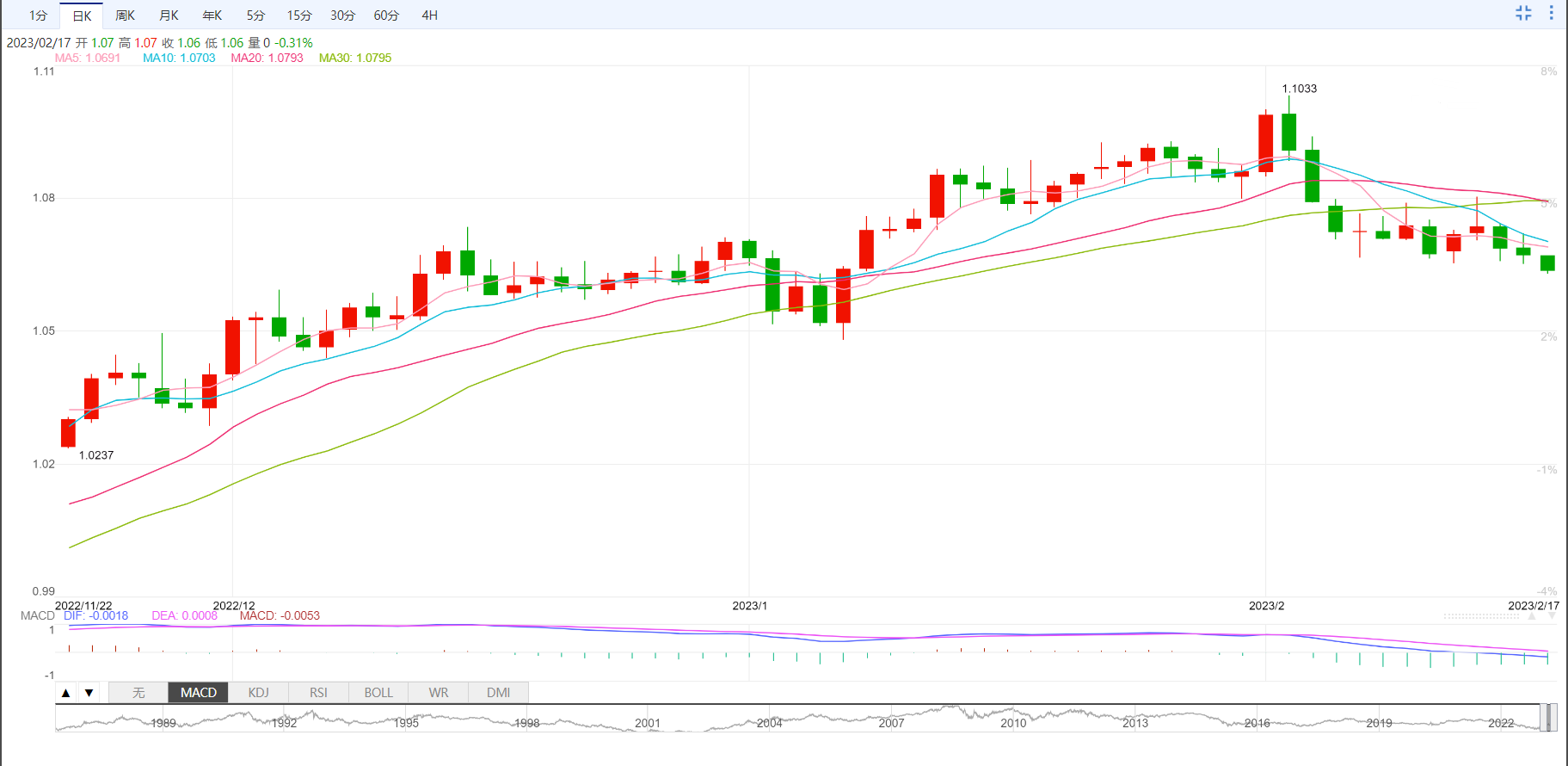美元指数盘整于一个半月高位104.30附近。在这期间,由于美国数据强劲且美联储政策制定者发表积极讲话,市场担忧美联储今后将维持鹰派,美元对六种主要货币获得提振。美国一系列有关通胀、就业和产出的经济数据,为推动美联储政策政策转向提供了支撑。这种趋势可以从美联储官员的最新讲话和美联储观察工具中得以体现。即将发布的积极的美国宏观经济数据加大上述预期。这些数据表明,尽管借贷成本不断上升,通胀居高不下,但美国经济仍具有韧性。此外,美联储多位成员发表鹰派论调表明,美联储将继续收紧货币政策。这反过来又推动美国国债收益率全面走高,并支撑美元。