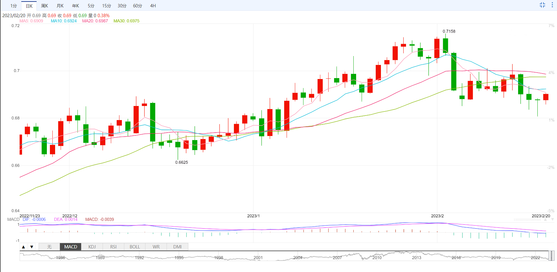 澳元/美元刷新日线高位0.6880上方,中国人民银行一年期贷款优惠利率稳定在3.65%,五年期贷款优惠利率保持在4.30%不变。值得注意的是,澳大利亚是中国的主要贸易伙伴,中国经济活动加速将支持澳元。澳元将关注周三公布的第四季度劳动力成本指数(Labor Cost Index)数据。第四季度劳动力成本指数年率预期为3.4%,前值3.1%。第四季度劳动力成本指数季率预期为0.7%,前值1.0%。就业成本数据的上升可能会增加澳大利亚储备银行(RBA)进一步加息的机率。家庭拥有更多的资金将导致消费支出增加,这可能会进一步加速澳大利亚的消费者价格指数(CPI)。