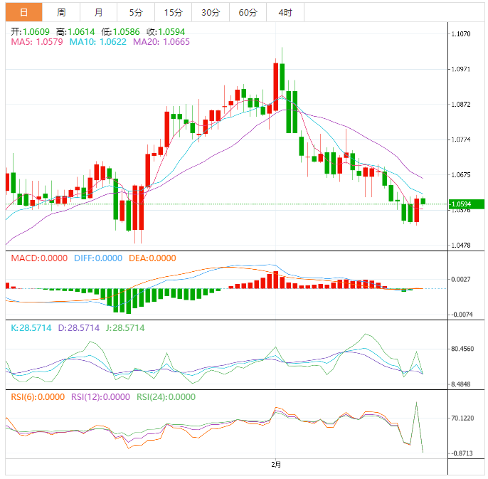 周二亚洲时段,美元指数窄幅震荡,目前交投于104.76附近。美元周一从七周高位回落,追随美国国债收益率下滑趋势,投资者在美元近期上涨后巩固涨幅,而且1月份耐用品订单降幅大于预期,同时等待2月美国就业和消费者物价数据。此外,英国首相苏纳克宣布与欧盟达成协议,将对原有的北爱尔兰议定书进行修改。英镑兑美元周一大涨1.04%,录得创六周来最大单日涨幅。