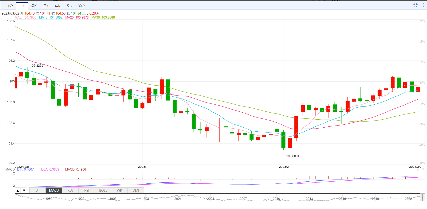 支撑位:105.19 105.39 105.78