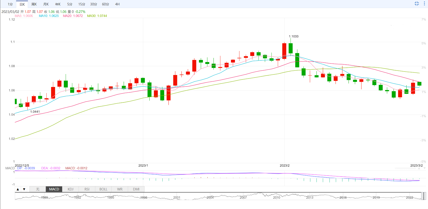 支撑位:1.059 1.0515 1.0464