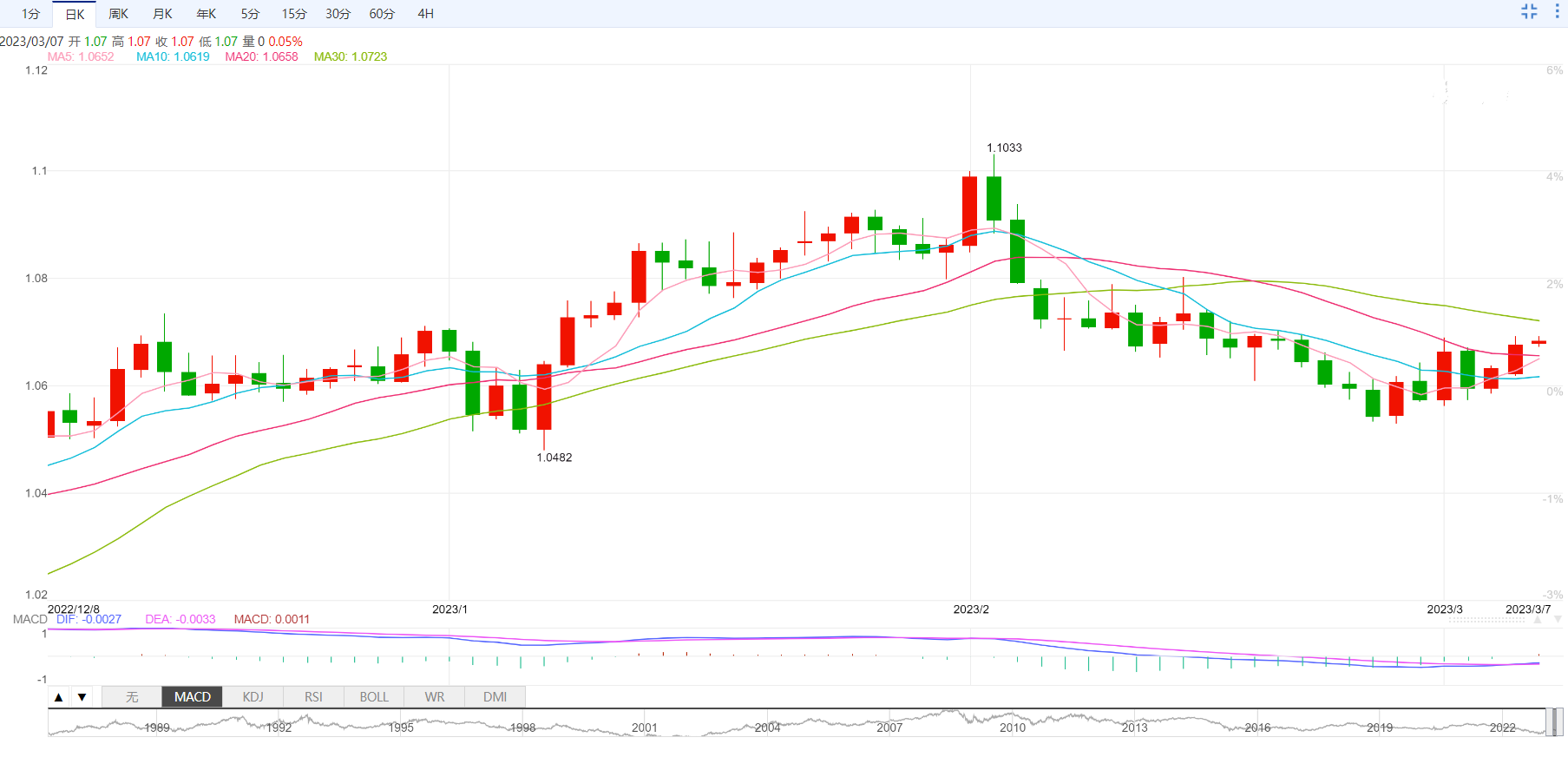 技术面:欧元/美元正上涨接近供应获1.0698-1.0705附近。由于欧元/美元上涨势头强劲,预计欧元/美元将重新夺回该水平。发稿时分别处在1.0674和1.0654的20週期和50週期指数移动均线构筑金叉,表明欧元/美元维持上涨倾向。