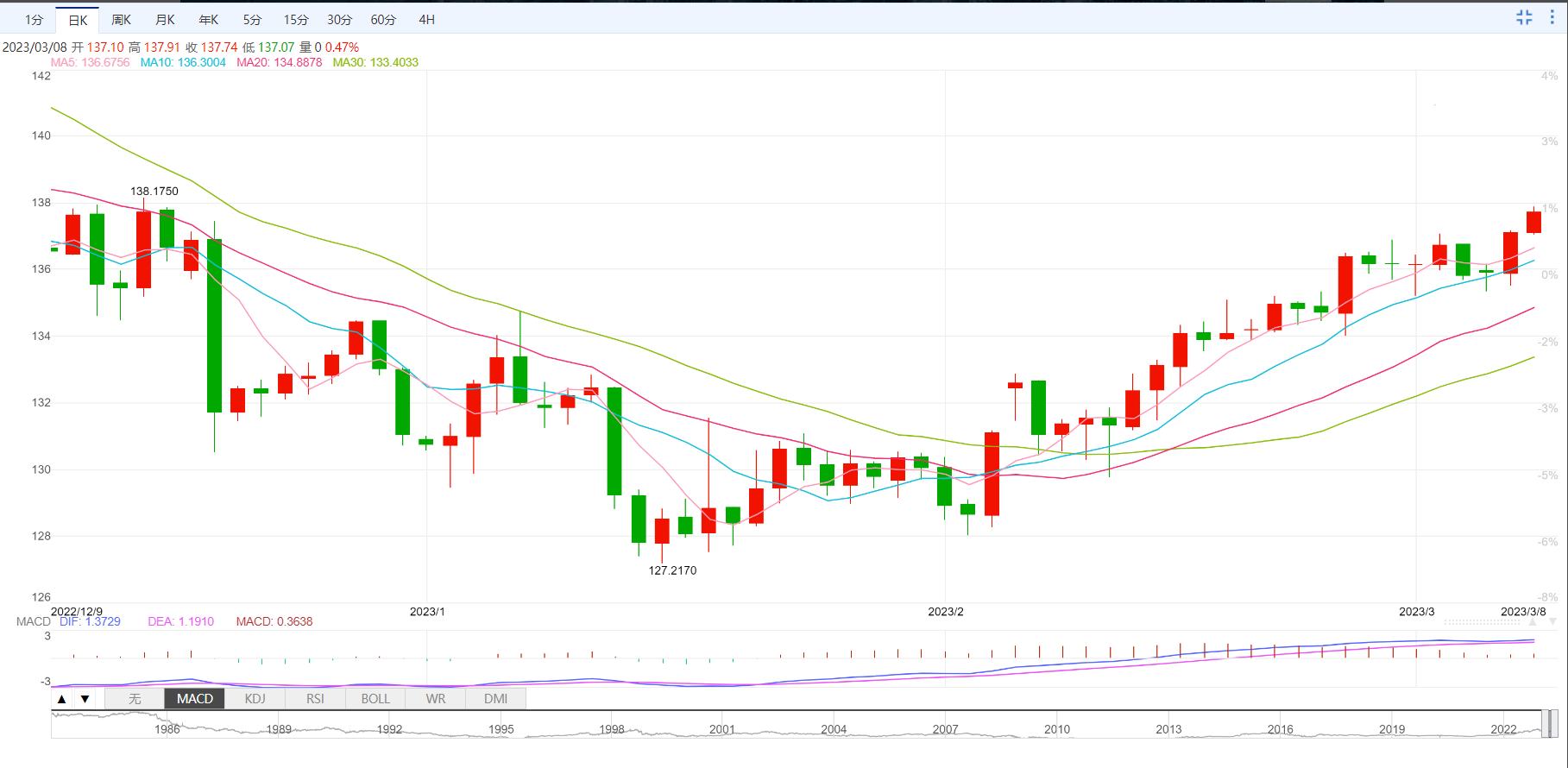 美元/日元多头佔据主导。在这期间,美元/日元上涨至2022年12月中旬以来的最高水平后,整理于137.40-50区域附近。值得注意的是,美元/日元最新上涨可能与明确突破100日移动均线阻力有关。然而,在相对强弱指标(14)的超买的状况下,处在137.45-50附近的200日移动均线水平构成阻力。即使美元/日元多头成功突破上述关键移动均线,2月初以来的上行倾向阻力(截至发稿时处在138.35附近)也可能成为美元/日元进一步上涨目标。