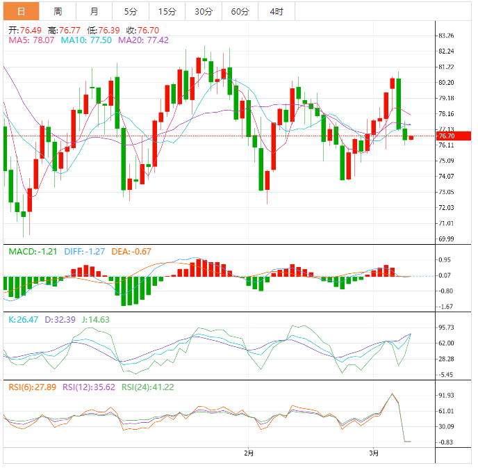 支撑位:75.93 75.27 74.32