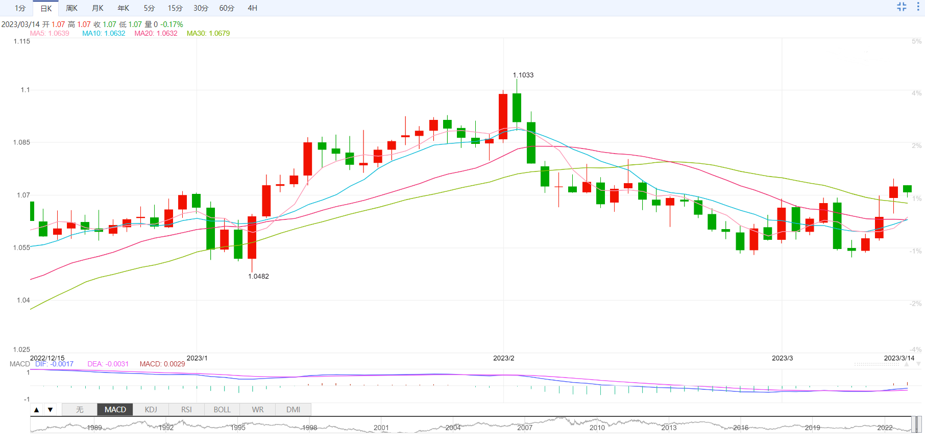 美元/日元温和上涨于133.70附近,结束三日下跌趋势,并自前日走出的一个月低点反弹。在这期间,美国採取行动试图抑制来自硅谷银行(SVB)和Signature银行风险事件所引发的波动,日元货币对受到提振。继前日债券市场灾难之后,美国国债收益率最新有所回升,这可能会为美元/日元反弹增添力量。