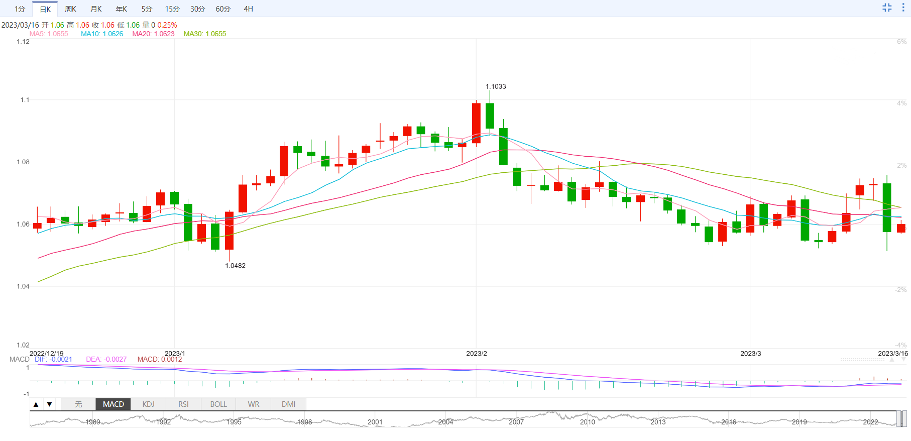 美元指数:截止发稿,美元指数下跌,现报104.46,跌幅0.28%。欧市盘前,美元指数巩固了一周最大的单日涨幅,刷新了盘中低点104.60附近。尽管如此,市场的不作为以及全球政策制定者急于安抚瑞信动荡引发的担忧,似乎有利于美元指数的最新回调。然而,美联储的鹰派押注以及没有任何重大进展可以对抗金融市场风险,使美元指数保持在多头上方。