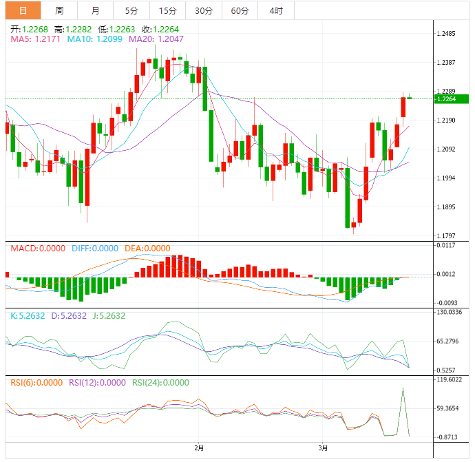 欧元兑美元周一尾盘上涨0.28%,收报1.016美元;英镑兑美元周一尾盘报1.2268美元,当日上涨0.76%,盘中一度创近一个半月新高至1.2284%,市场普遍预计欧洲央行本周将加息25个基点。美联储关于加息的最新决定将于周三发布,为投资者增加了一层不确定性。澳元兑美元周一上涨0.27%,报0.6715美元。美元兑加元周一下跌约0.6%,收报1.3654,为近两周最低收盘价。