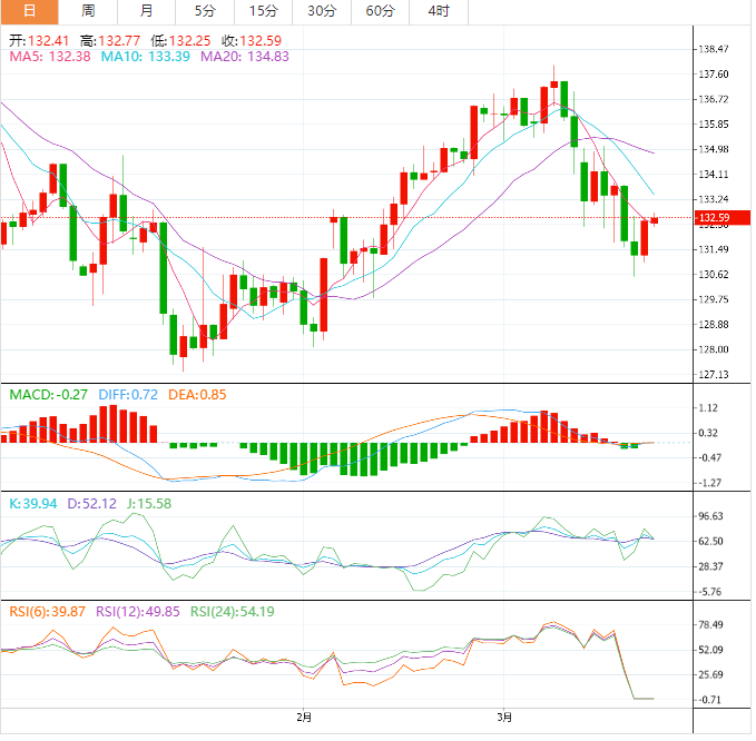 周三亚洲时段,美元指数在逾一个月低位附近徘徊,目前交投于103.22附近。市场对欧美银行业的担忧情绪有所降温,瑞银和美国第一共和银行周二股价大涨,避险日元遭遇抛售,美元兑日元周二大涨0.9%,避险美元周二也小幅下探0.07%。