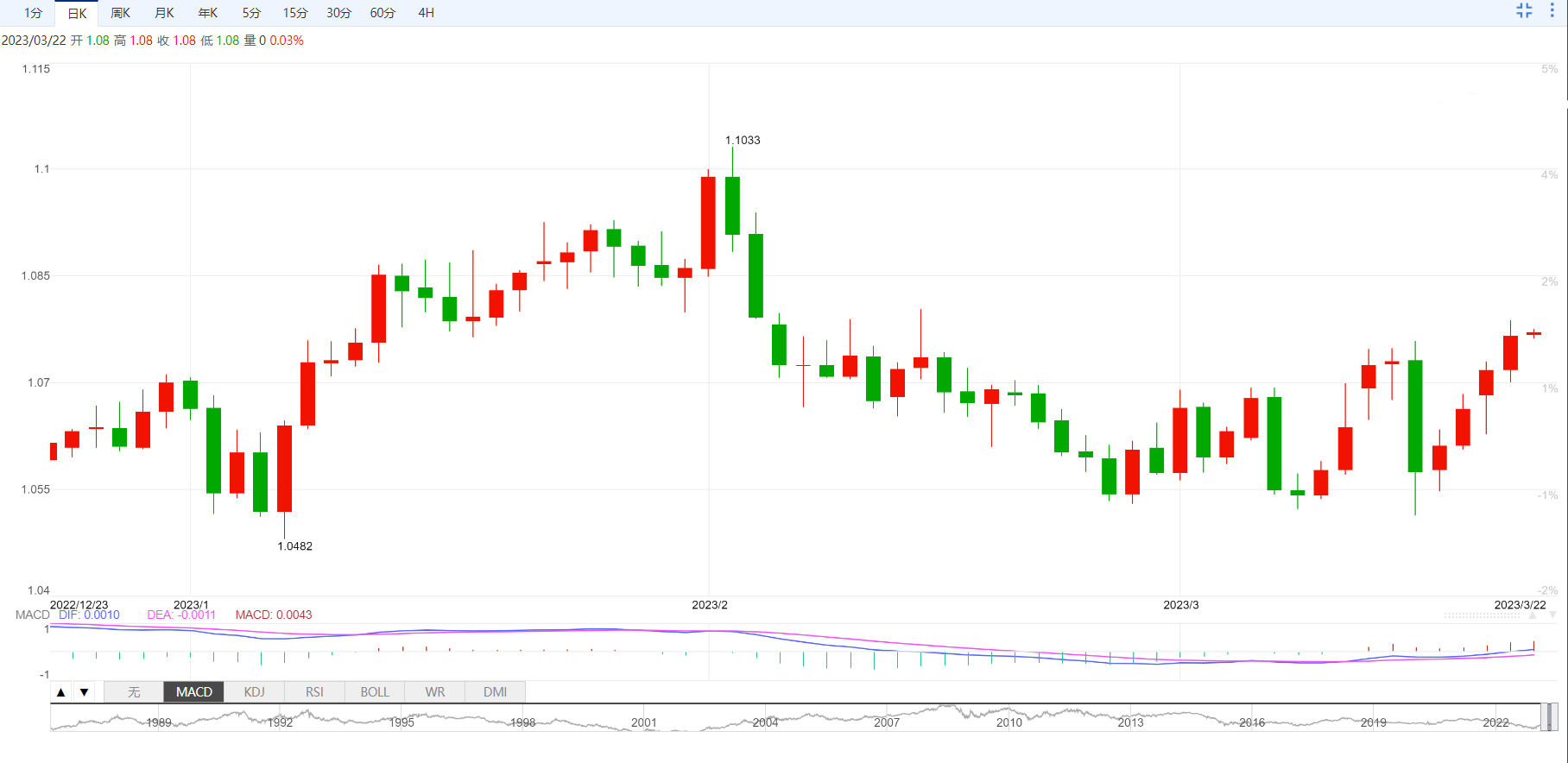 美元指数:截止发稿,美元指数下跌,现报103.20,跌幅0.04%。欧市盘前,美元指数努力维持下跌势头。即便如此,美元兑六大主要货币依然承压于前日录得的五週低点附近,接近103.20。
