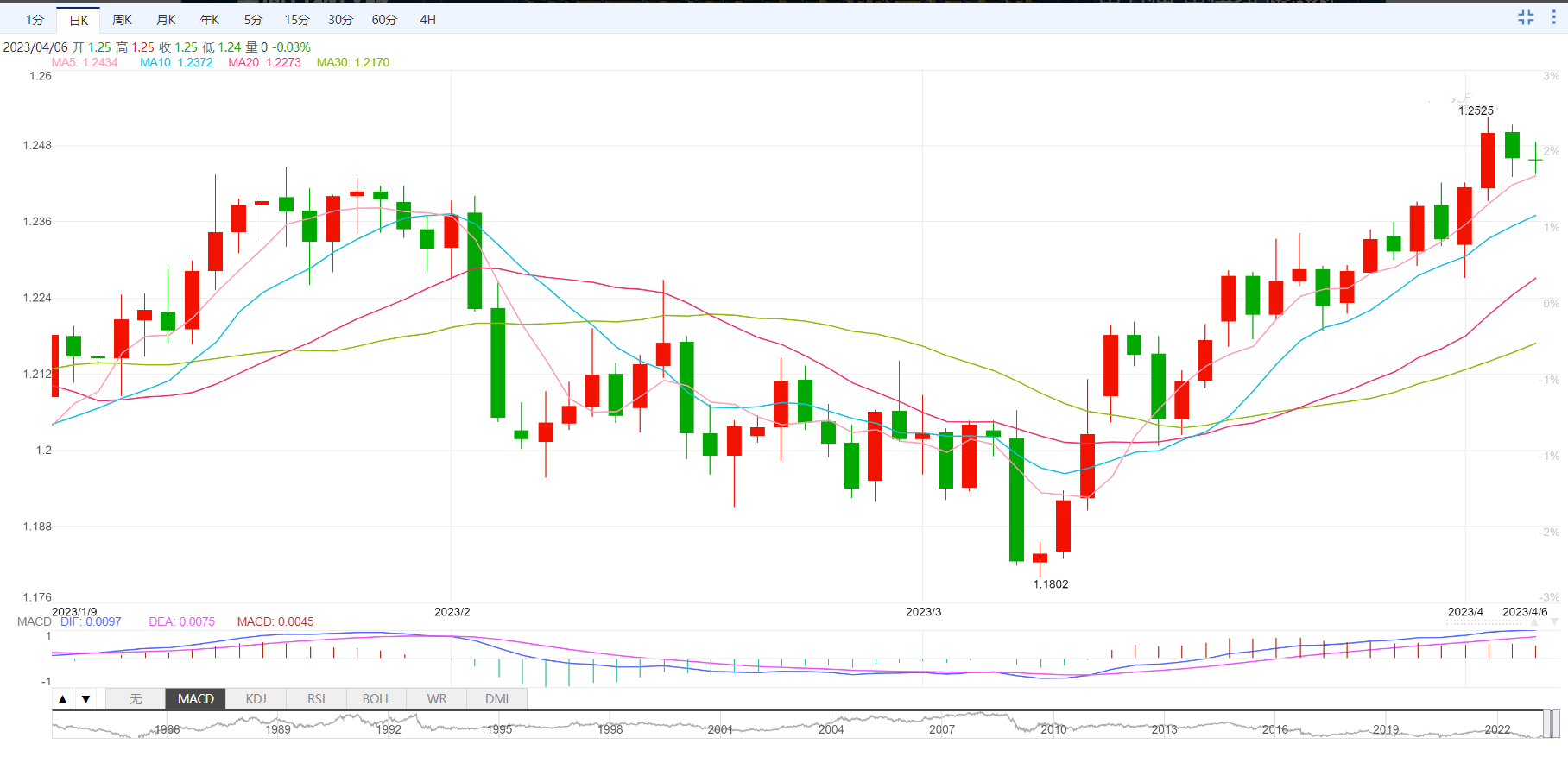 周四,英镑/美元整理于周三低点1.2440附近。市场对美国经济衰退前景的担忧加剧的情况下,标普500指数期货亚市大幅下跌,延续两日跌势。美国制造业连续五个月收缩后,美国服务业采购经理人指数弱于预期,加大经济放缓的信号。好在美国服务业採购经理人指数仍未处在收缩通道。英镑方面,英国央行决策者对英国通胀将开始迅速下降的预期似乎很模糊。没有迹象表明英国的通货膨胀已经开始回落,而且,油价出现新一轮跳涨预计将给家庭支出带来更多负担。
