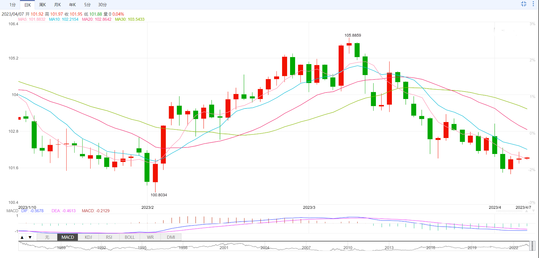 低迷的美国数据引发了人们对美联储5月不加息的担忧,并对美元构成压力。然而,同样的美国统计数据引发了经济衰退的忧虑,并为美元提供支撑。由此,美元在102.00附近小幅上涨。谈到美国的数据,截至3月31日当周的初请失业金人数提高到22.8万,而预期为20万,前值为24.6万,被上调。值得注意的是,上述月份的挑战者裁员人数从之前的77.77万上升至89.703万。此前,美国2月JOLTS职位空缺降至19个月的低点,而3月ADP就业变化也令市场失望,数据为14.5万。此外,美国3月ISM服务业PMI也加剧了市场的悲观情绪,因为它降至51.2,而预期为54.5,前值为55.1。