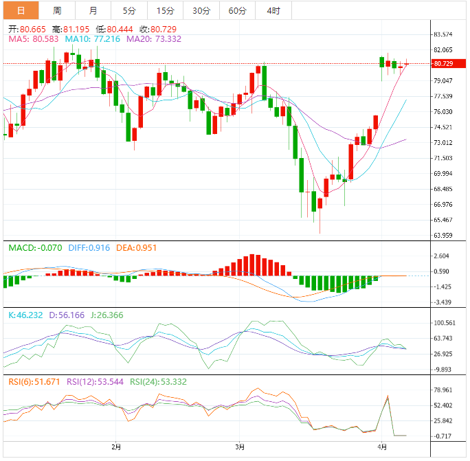 阻力位:81.07 81.66 82.36