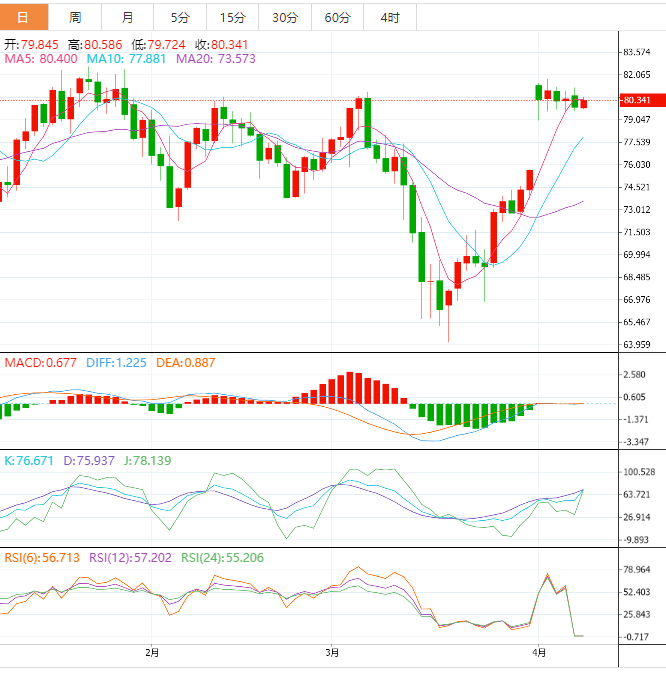 阻力位:81.07 81.66 82.36