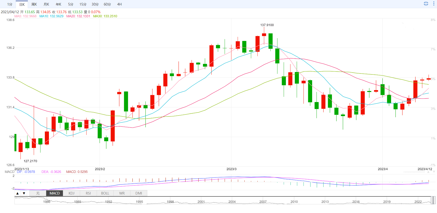 美元兑日元周三亚市小幅冲高,一度创近四周新高至133.99,涨幅约0.26%,这反映出美联储积极的货币政策紧缩周期与日本央行超宽松政策之间的鲜明对比。
