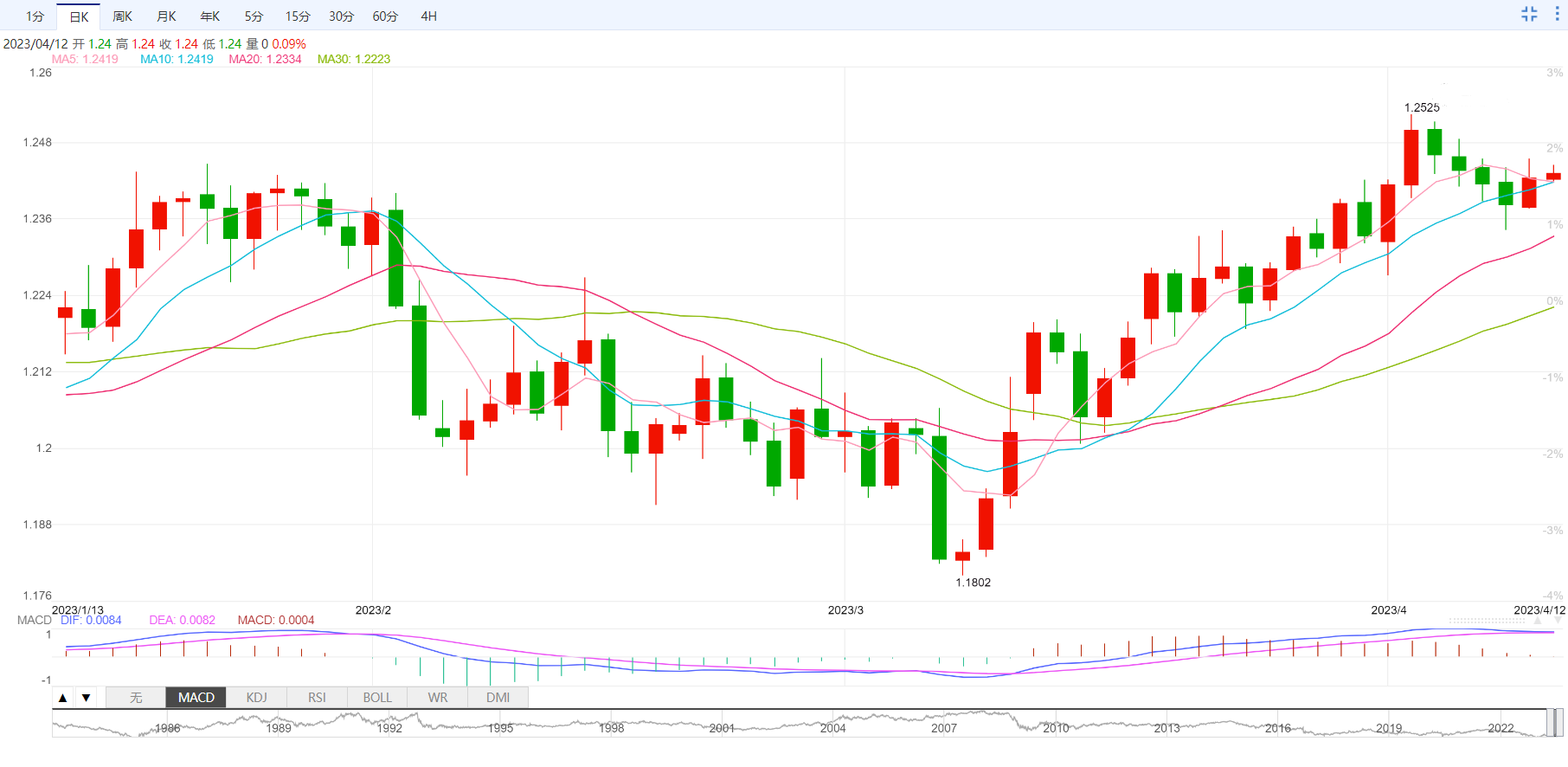 美元指数:截止发稿,美元指数下跌,现报102.04,跌幅0.12%。欧市盘前,美元指数扩大周二跌势并于週三交投于102.00附近。该指数依然承压并继续回吐週一的涨幅,在今日北美时段公布关键的美国通胀率数据之前测试102.00区域。与此同时,在美联储于5月3日会议上再加息25个基点的预期上升之际,美国国债收益率进一步逐步反弹。