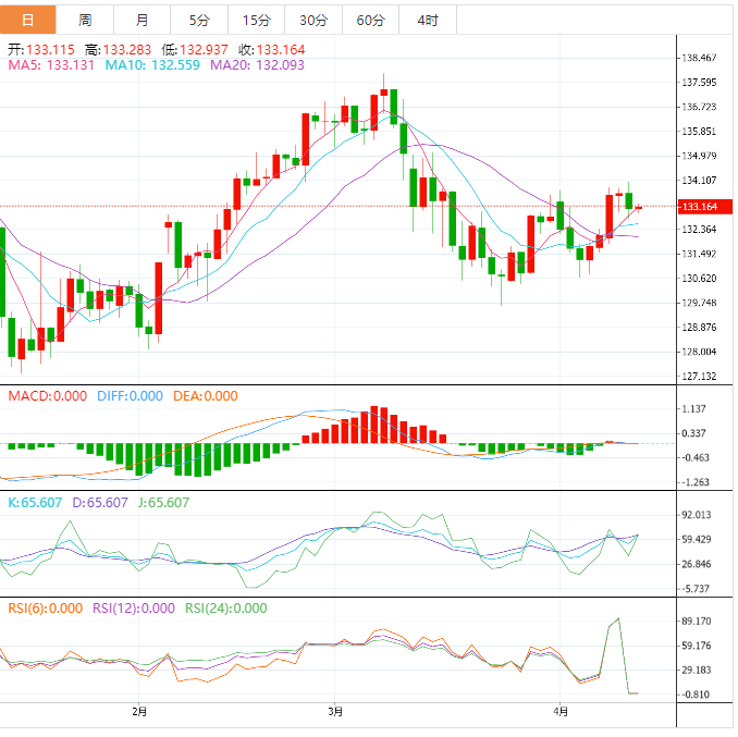 日内关注,澳大利亚3月季调后失业率,澳大利亚3月就业人口变动,中国3月贸易帐,英国2月工业产出月率,英国2月GDP月率,美国截至4月8日当周初请失业金人数,美国截至4月1日当周续请失业金人数,美国3月PPI年率。需要关注的大事件包括韩国央行公布利率决议,英国央行首席经济学家皮尔发表讲话,加拿大央行行长麦克勒姆在IMF春季会议发表讲话,OPEC公布月度原油市场报告。