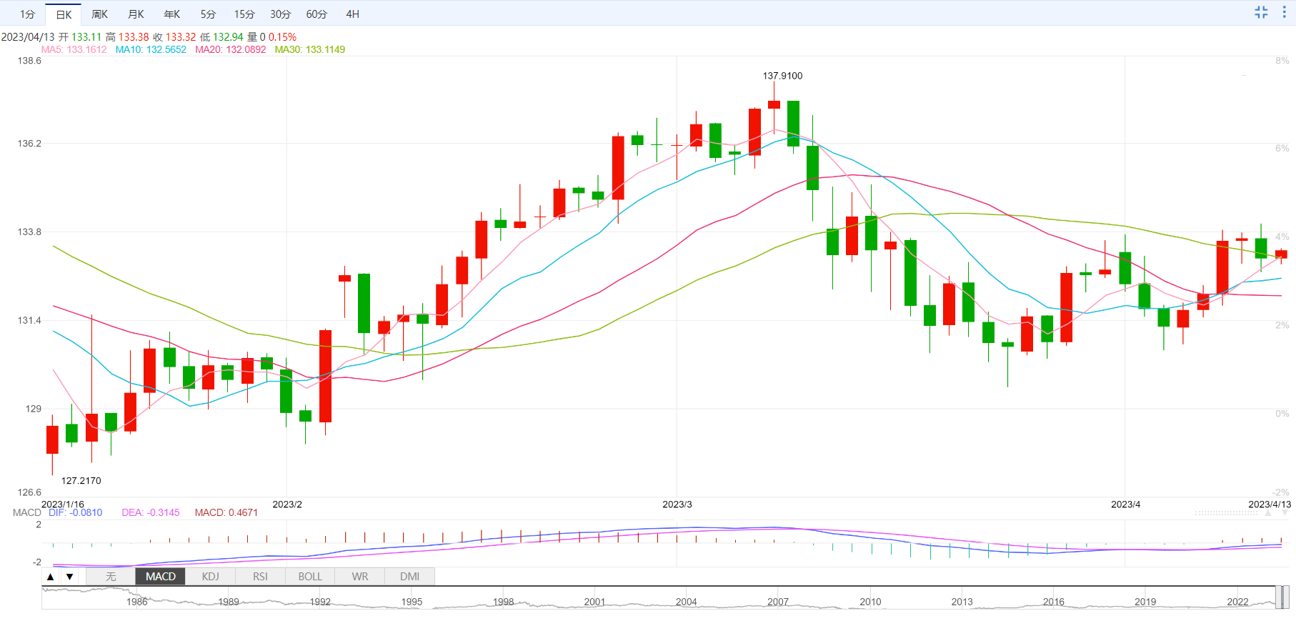 支撑位132.75-80,132.35-40,阻力位133.40-50,134.00-10。