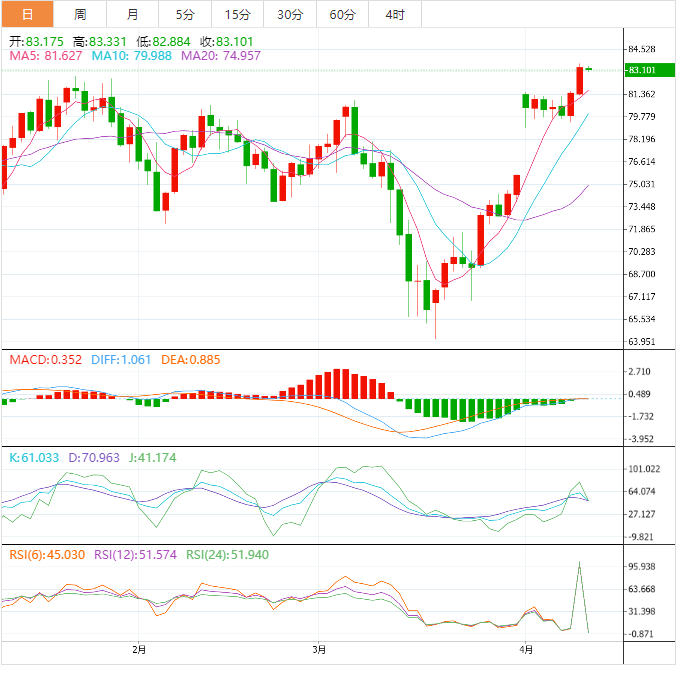 阻力位:82.17 82.93 84.32