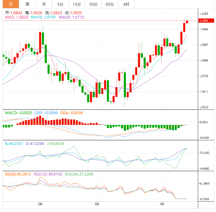 日内关注,美国3月进口物价指数月率,美国3月进口物价指数年率,美国3月零售销售月率,美国3月零售销售年率,美国3月核心零售销售月率,美国3月工业产出月率,美国4月密歇根大学消费者信心指数初值。需要关注的大事件包括IEA公布月度原油市场报告,美联储理事沃勒就经济前景发表讲话。