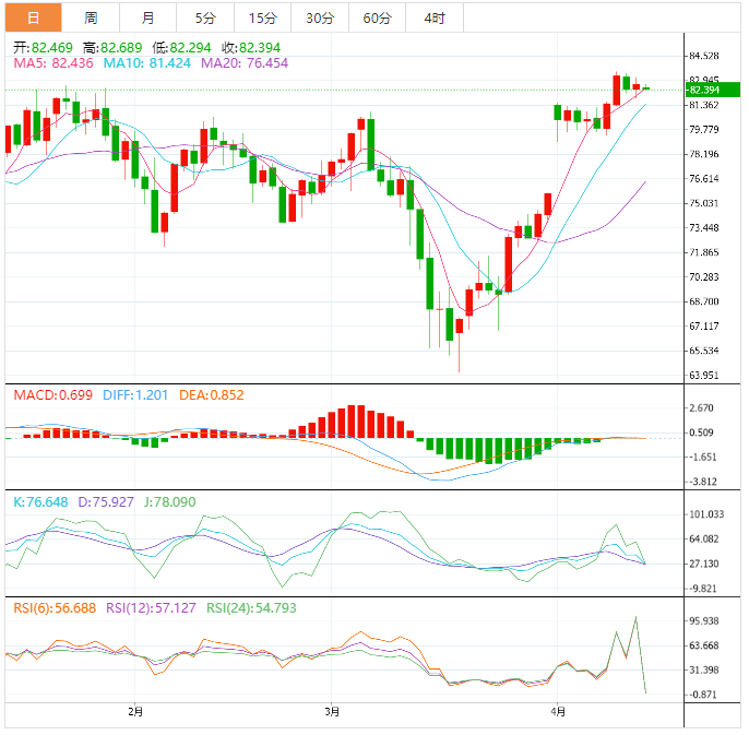 技术面:原油价格已经从之前的79.00-81.80美元的拍卖区间转移到81.80-83.40美元,这表明上行偏见仍然稳固。此外,50周期指数移动平均线(EMA)上涨至82.00美元,为石油多头提供了缓冲。相对强度指数(RSI)(14)已经形成了一个较低的高点,而资产仍在创造更高的高点。在上行势头丧失后没有后续抛售,表明该资产正在为反弹做准备。