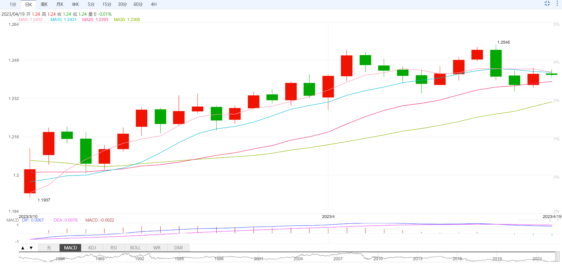 英镑/美元最新交易于1.2425,当日持平,隔夜自低位1.2366升至高位1.2449,因为市场正分析英国数据,并期待着日内通胀数据给英镑/美元带来新催化剂。英央行政策方面,荷兰合作银行的分析师指出,英镑投机者淨空头头寸已降至2022年3月以来的最低水平,这反映一系列英国经济数据不那麽糟糕,提振市场情绪。市场对再次加息25个基点的定价是完全合适的,并认为今后几个月存在英央行进一步收紧的风险。