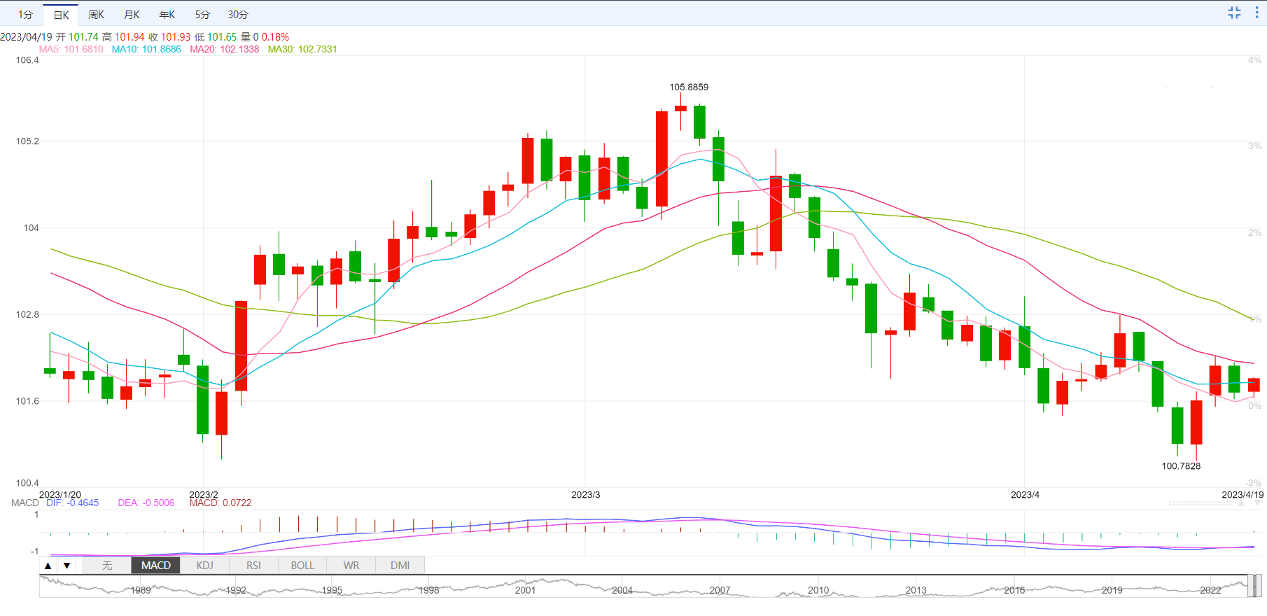 支撑位:100.99 100.41 100.04