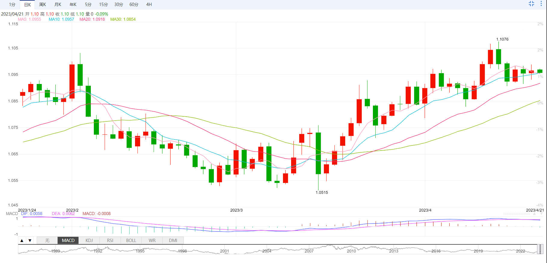 阻力位:1.0995 1.1021 1.1052