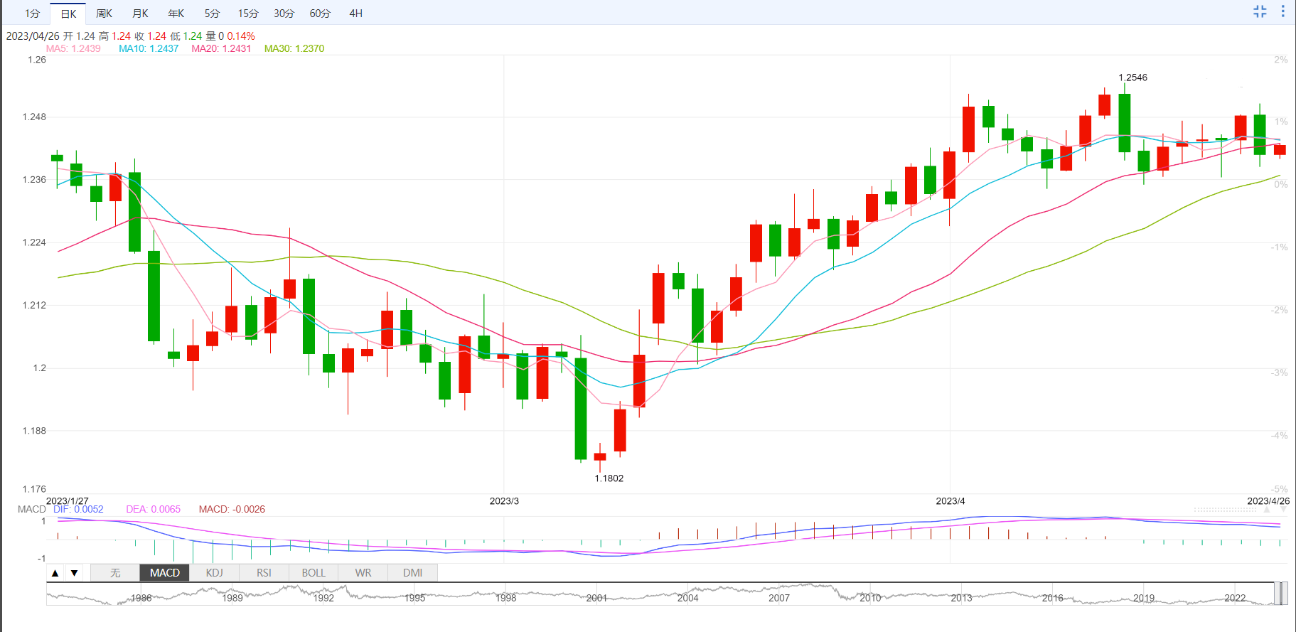 英镑兑美元微升0.05%,接近1.2402-1.2419区间的顶部。