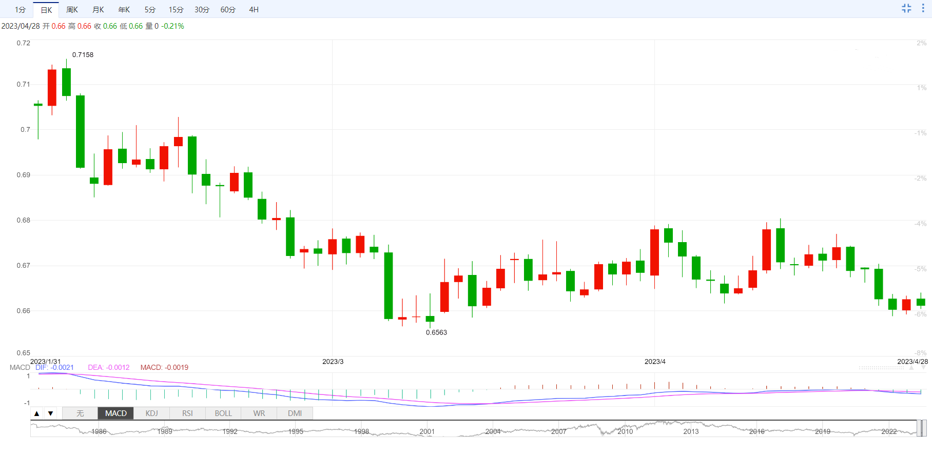 澳元兑美元在亚市未能扩大反弹至0.6640上方后大跌。在美联储公佈利率决议之前市场焦虑之际,随著投资者将资金转入美元指数,该资产感受到抛压。澳元正面临著巨大的压力,因为澳大利亚储备银行预计将继续对利率採取中性立场。澳大利亚央行行长Philip Lowe将其官方现金利率(OCR)维持在3.60%不变,认为目前的利率规模足以抑制顽固的通货膨胀。