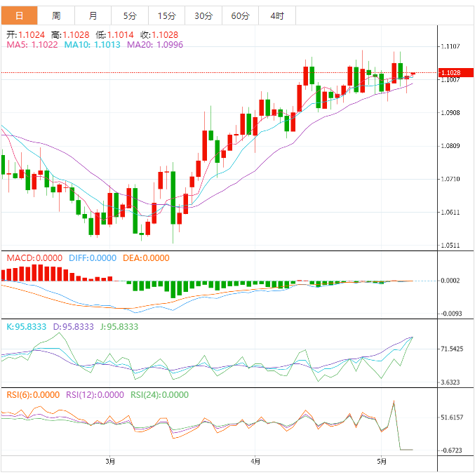 周一亚洲时段,美元指数微涨,目前交投101.23附近。上周五美元指数稍早触及101.78的日高,随后回落,最后收跌0.18%,报101.21,此前美国4月就业和薪资增长均超出经济学家的预测,但3月就业岗位增幅被下。