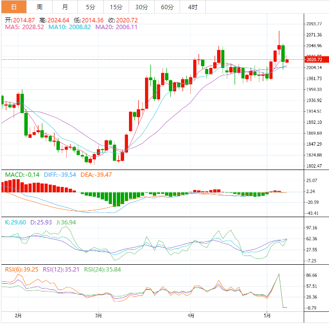 周一亚市,现货黄金小幅反弹,最高触及2022.34美元/盎司,涨幅约0.28%,因市场对美国债务违约的担忧情绪升温,不过,涨幅仍然受限,因为投资者在本周美国关键的通胀数据公布前保持谨慎。
