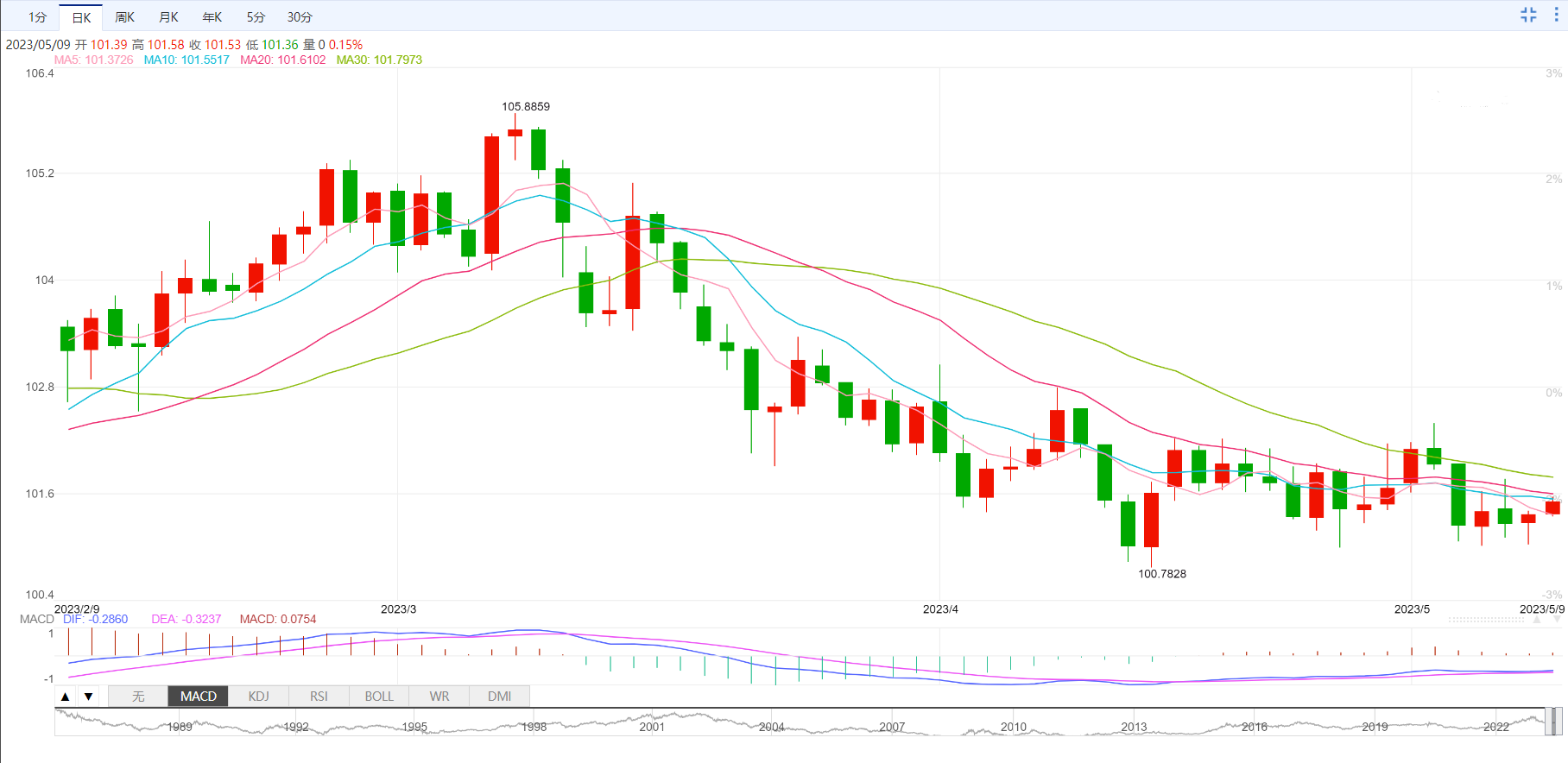 支撑位:101 100.72 100.33