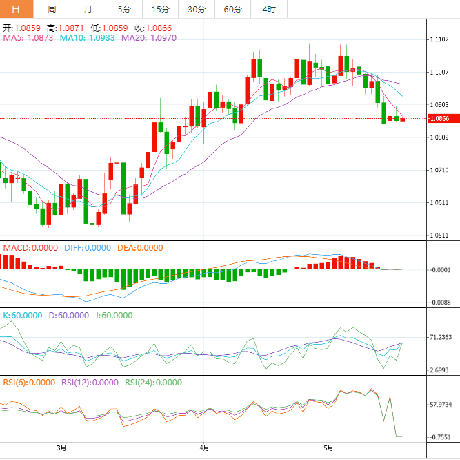 日内关注,欧元区4月调和CPI年率-未季调终值,美国4月营建许可月率初值,美国截至5月12日当周EIA原油库存变动,美国截至5月12日当周EIA汽油库存变动。需关注的大事件包括亚特兰大联储主席博斯蒂克和芝加哥联储主席古尔斯比参加一场关于经济前景和货币政策的小组会议;欧洲央行副行长金多斯发表讲话。