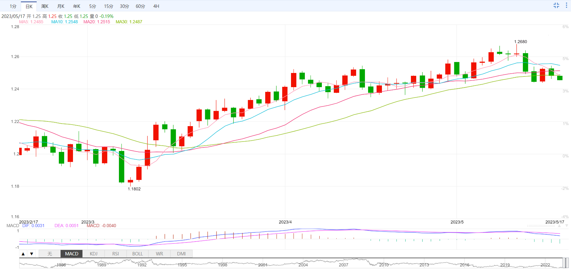 英镑兑美元于周三欧市早盘在英镑兑美元上方震荡,难以取得果断性行情,跟随美元指数的步伐。美元指数位于短期阻力位102.70下方震荡。虽然围绕美国债务上限的谈判进一步推迟至本週底,但外汇市场波动不大。不过美国总统拜登已澄清他将每天与麦卡锡议长保持联繫,以解决谈判。同时,疲软的英国就业数据为英国央行(BoE)决策者提供了一些安慰。投资者应该注意到,劳动力短缺和历史上的高食品通胀仍然是英国通胀率达到两位数的主要催化剂。