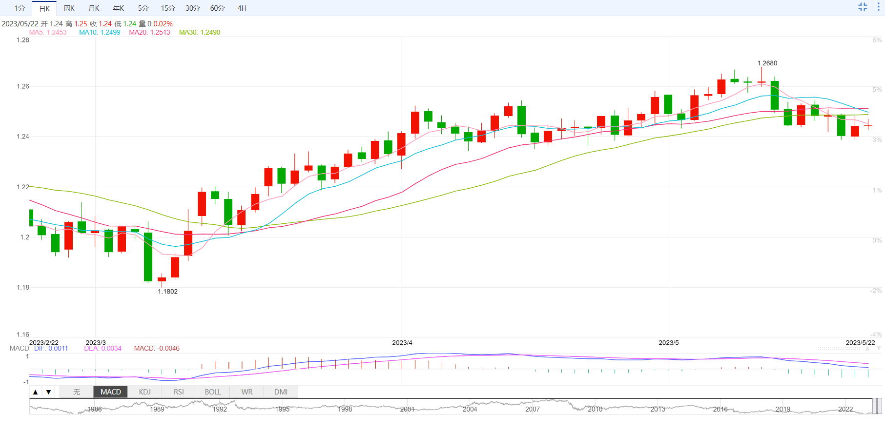 美元兑日元和欧元周一走势低迷,此前上周五美国债务上限谈判意外破裂,而且美联储主席鲍威尔表示倾向于放缓加息。