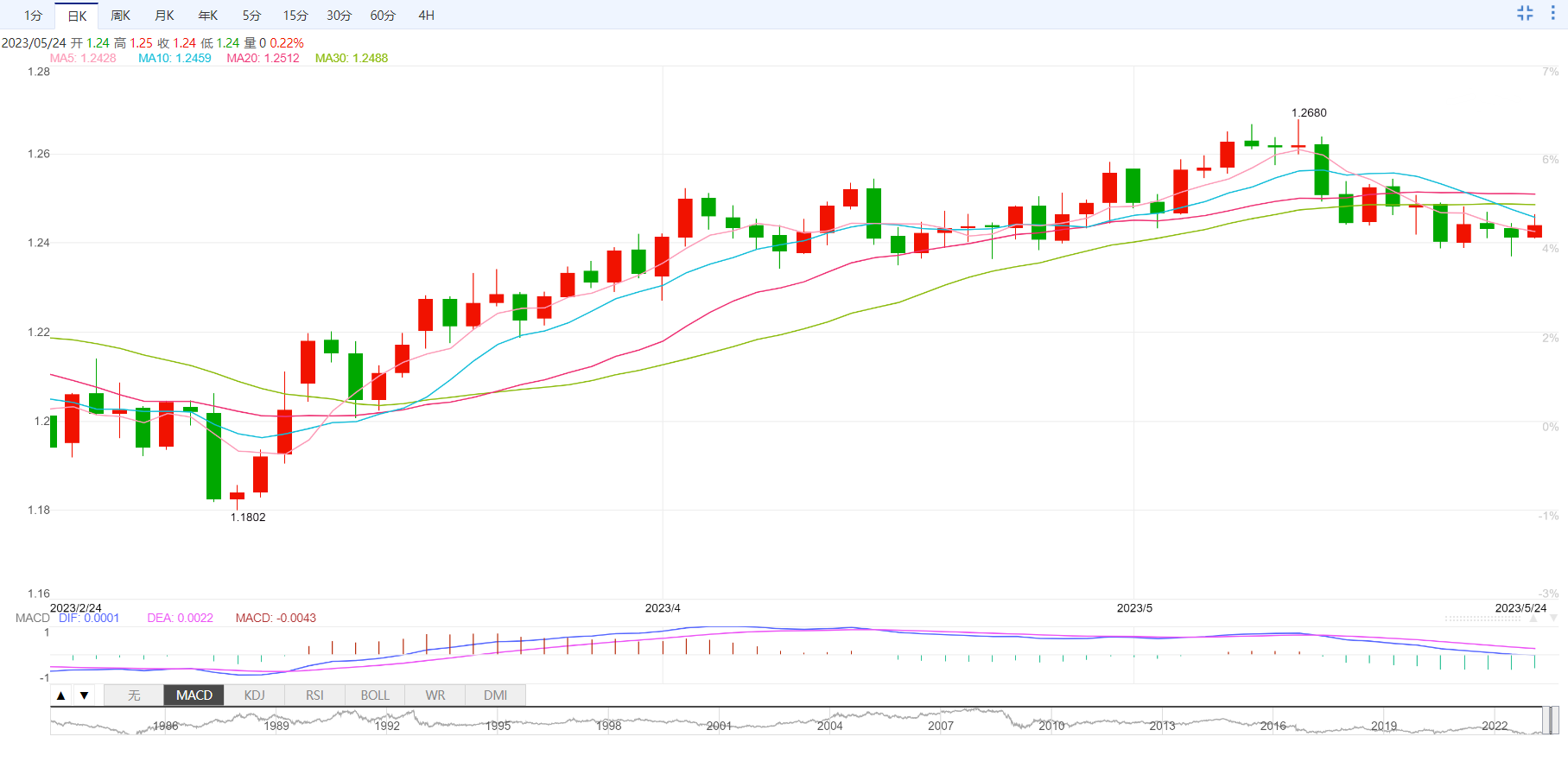 英镑/美元震荡于1.2420附近。早盘,英镑/美元止跌于1.2380附近明显反弹。英国消费者物价指数(4月)公佈之前,预计英镑会出现较大波动。整体通胀预期将自前值10.1%大幅降至8.2%。核心通胀预计将持稳在6.2%。英国央行(BoE)行长安德鲁·贝利(Andrew Bailey)表示,“我认为我们比以前更接近峰值”,并重申必须谨慎使用加息这一工具。
