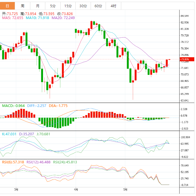 技术面:未能突破21日移动均线,加入了跌破两周以来上行支撑线(最晚接近72.55美元)的下行通道,这让西德克萨斯前质原油空头充满希望。