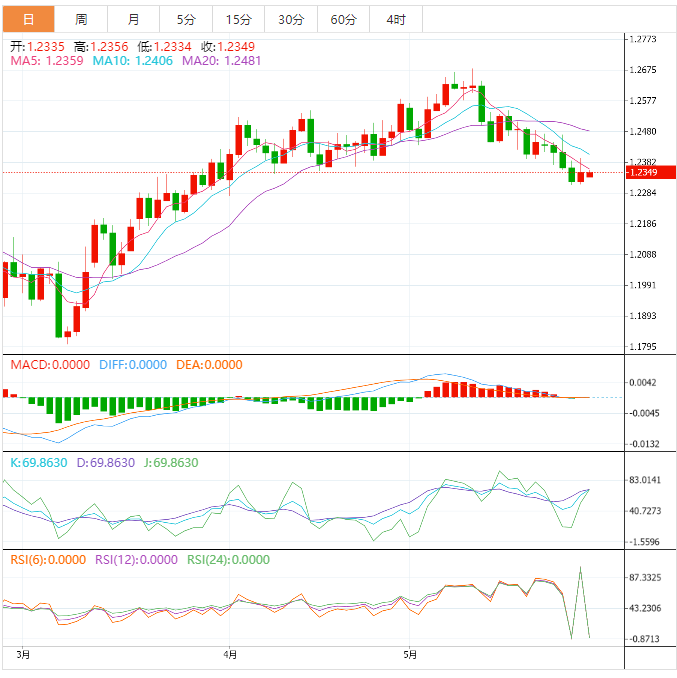 欧元:欧元/美元盘整在1.0700整数关上方。欧元/美元预计将继续保持行动,因为在民主党人对预算支出举措作出妥协后,两年内上调31.4万亿美元美国债务上限的提案已获批。欧元/美元已跌至3月15日低点1.0516到4月26日高点1.1095升势的61.8%斐波那契回撤位1.0738。20期指数移动均线(EMA)在1.0740,对欧元多头来说是一个强阻力。欧元/美元交投于下降通道,每次回撤都被市场参与者视为做空机会。