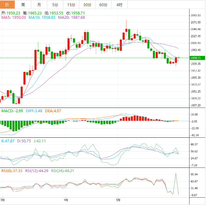 数据显示,中国5月制造业PMI录得48.8,为近五个月新低,也弱于市场预期的49.4;中国5月非制造业PMI数据录得54.5,为近四个月新低。