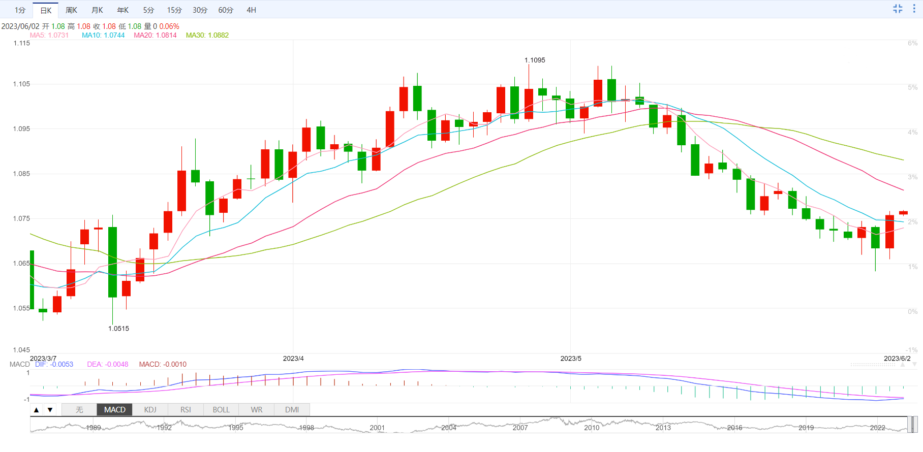 由于美联储采取中性利率政策的概率上升,美元指数跌破关键支撑位103.50。费城联邦储备银行行长帕特里克-哈克周四表示,他认为现在是央行至少在一次会议上'按下停止键'的时候了,重申了他週三关于在下次会议上可能暂停加息的评论。哈克认为,在这个时候採取这样的举措是谨慎的。