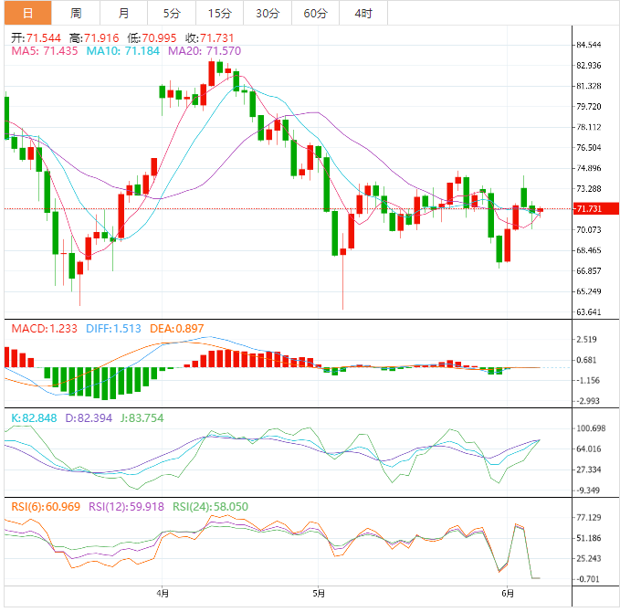 支撑位:71.07 70.17 68.52